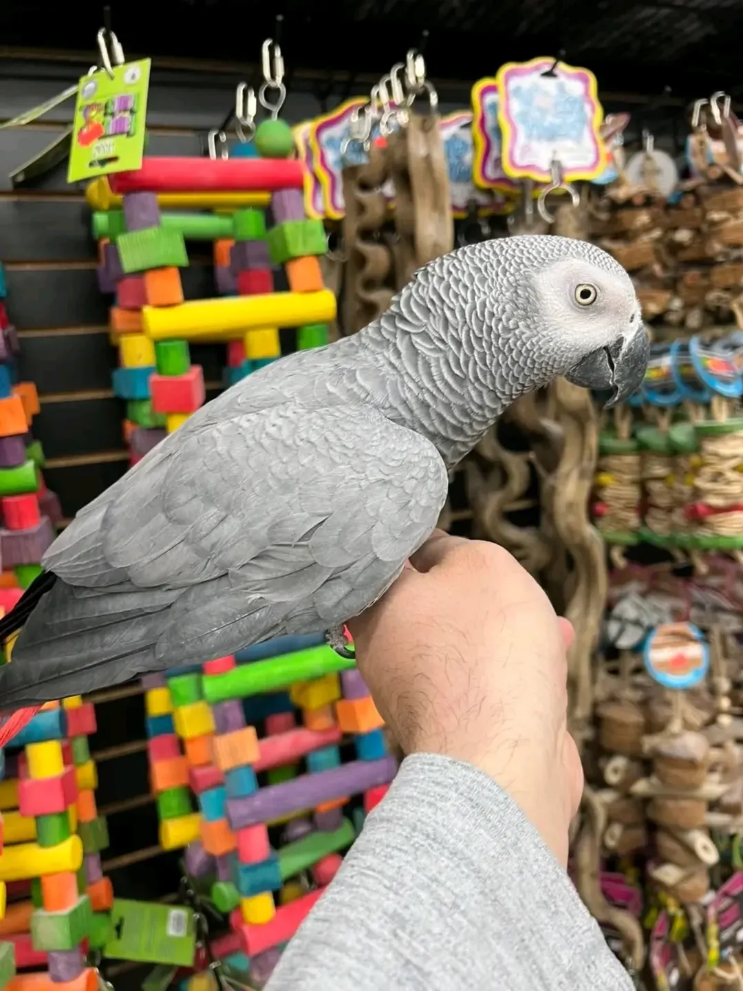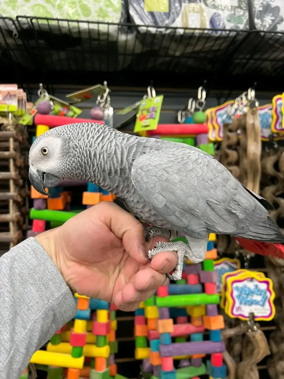 - Carefully bred African grey parrots