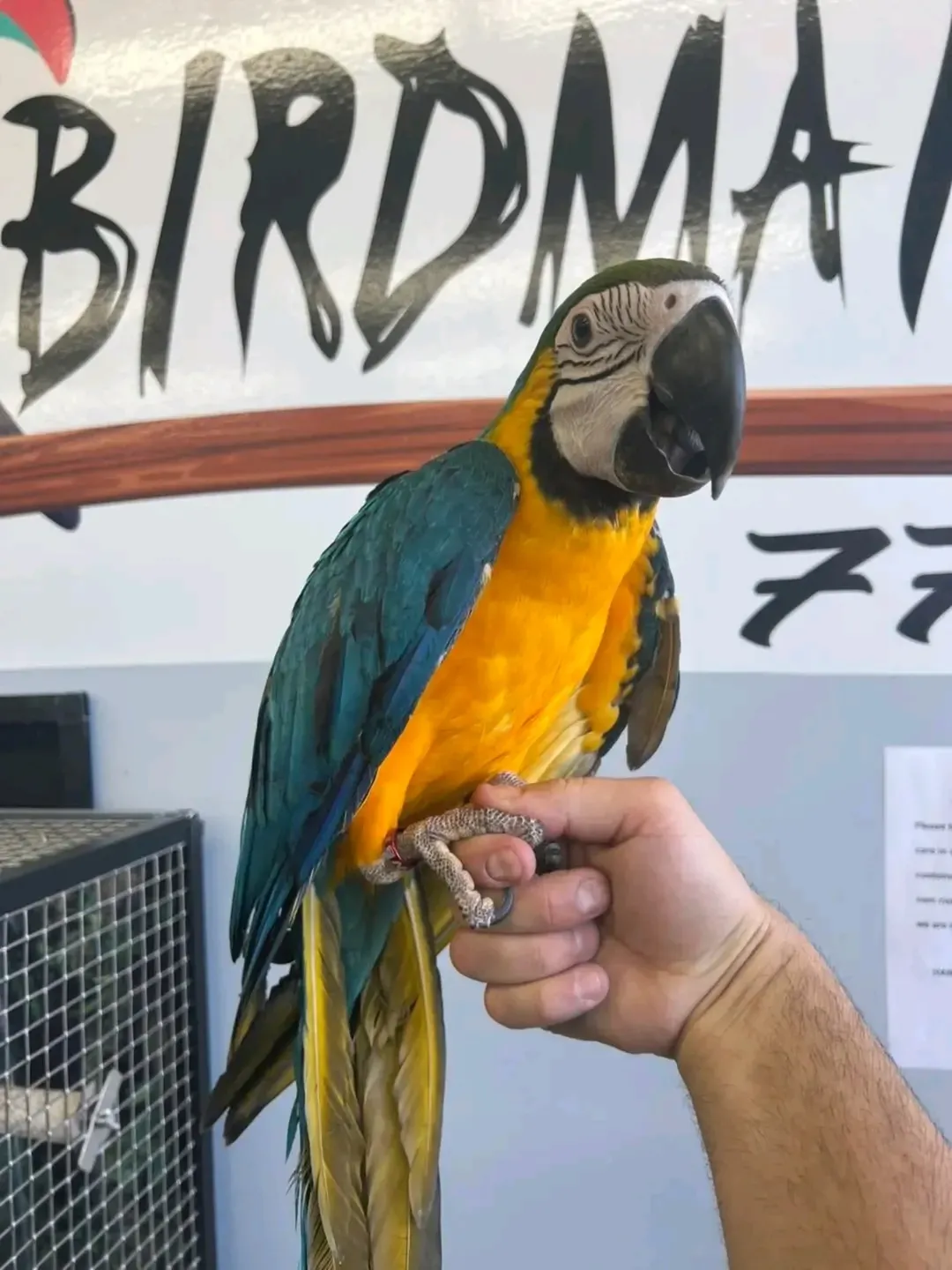 Meet Dolly, a breathtaking Blue & Gold Macaw with a vibrant personality and a loving heart. She is playful, intelligent, and enjoys plenty of attention—making her an ideal companion for anyone looking for a social and engaging parrot.