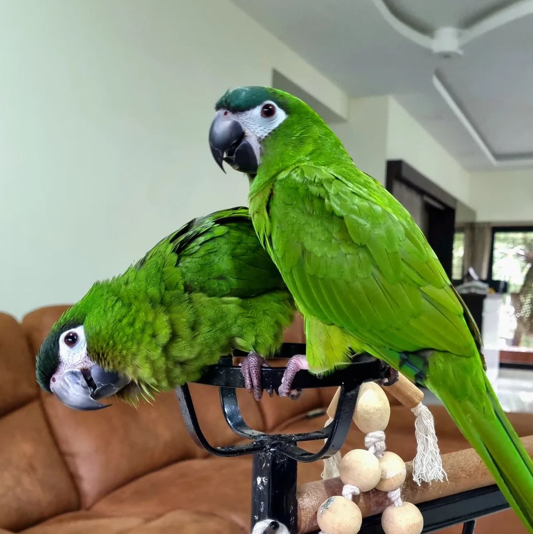 Meet Bonnie & Yoda, a delightful and well-bonded pair of Hahn’s Macaw parrots—also known as Mini Macaws. These charming birds are full of personality, intelligence, and affection, making them perfect companions for anyone looking for friendly and interactive pets.
