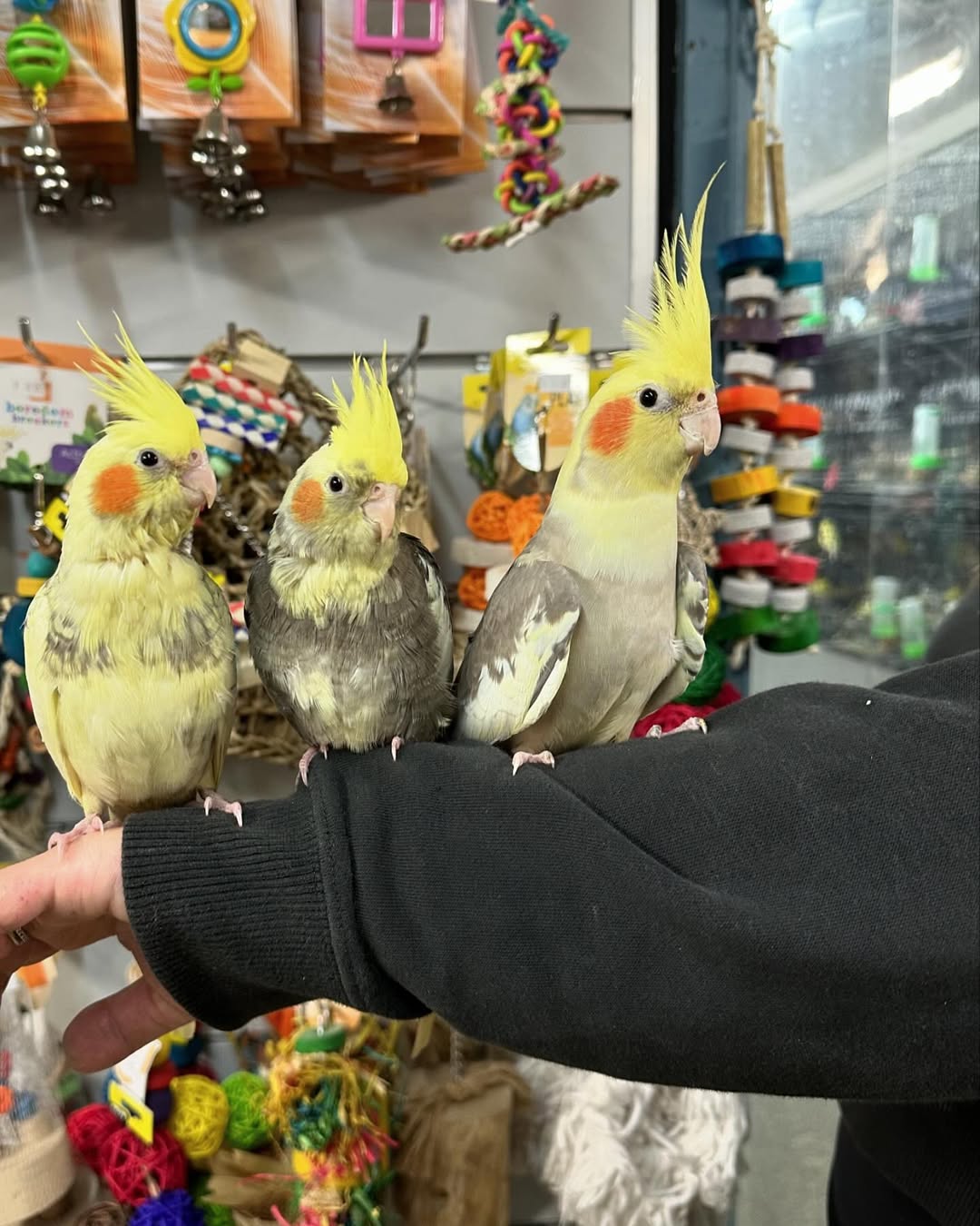 Meet this lovely group of Cockatiel parrots, featuring 2 females and 1 male, all healthy, active, and full of personality. Cockatiels are one of the most محبوب and beginner-friendly parrots, known for their gentle nature, charming whistles, and affectionate behavior.