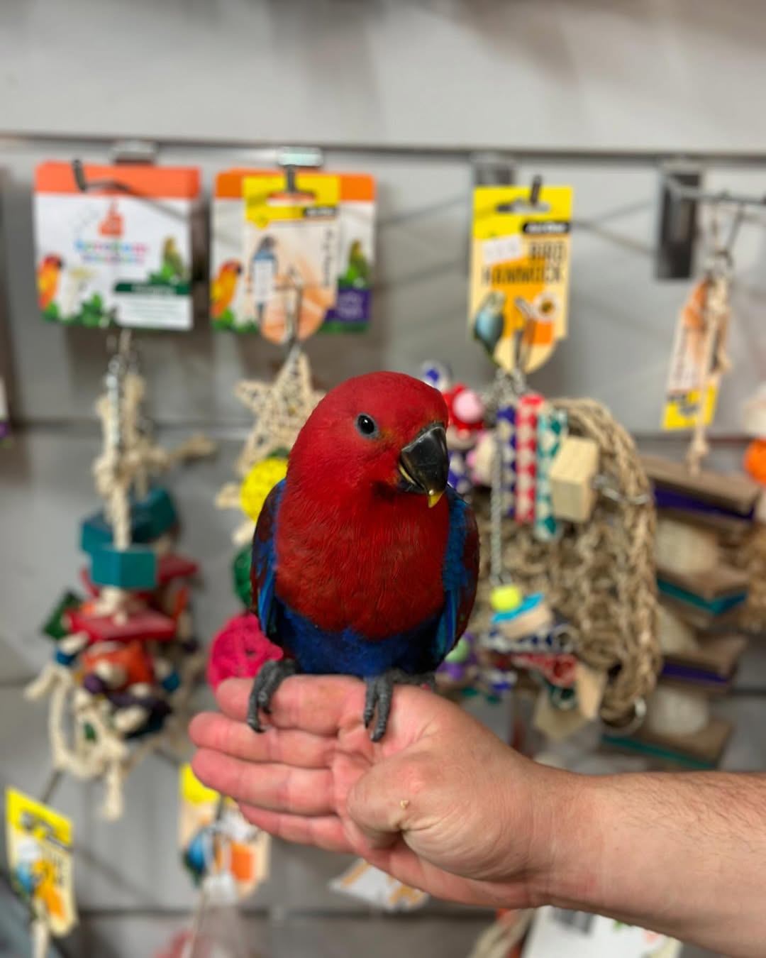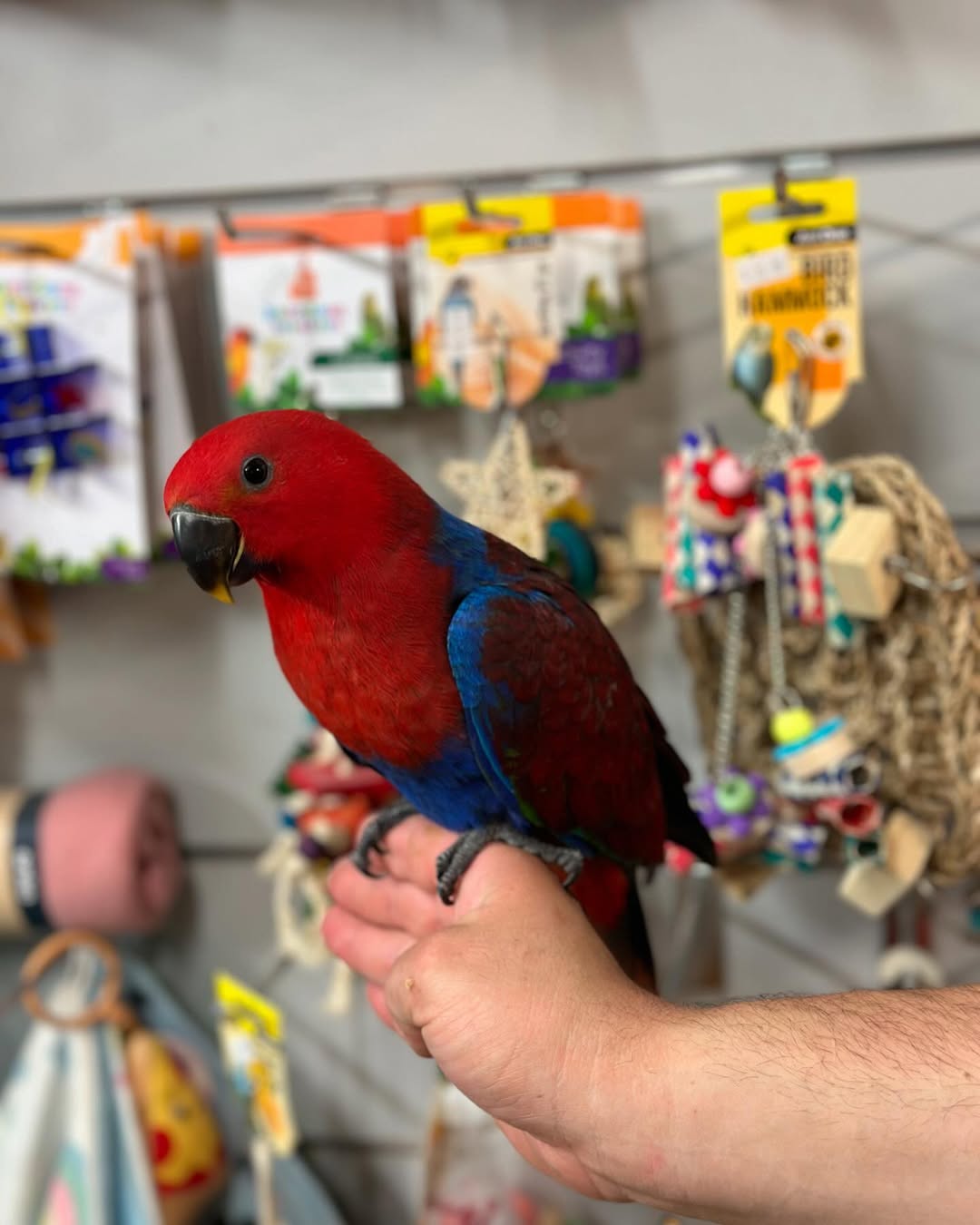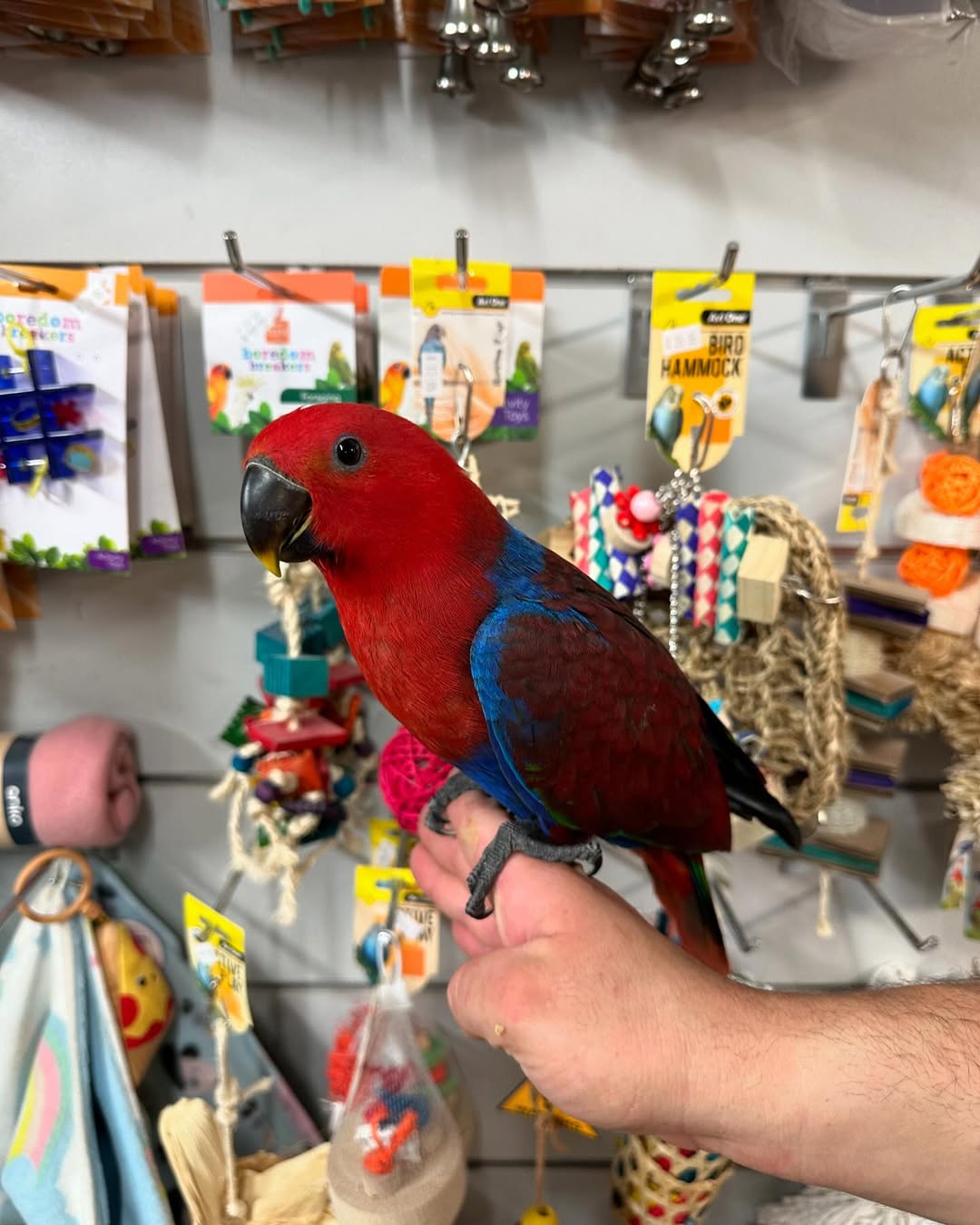 Meet Angel, a stunning female Eclectus parrot with vibrant colors and a calm, gentle personality. Known for their intelligence and unique beauty, Eclectus parrots make exceptional companions—and Angel truly lives up to her name.