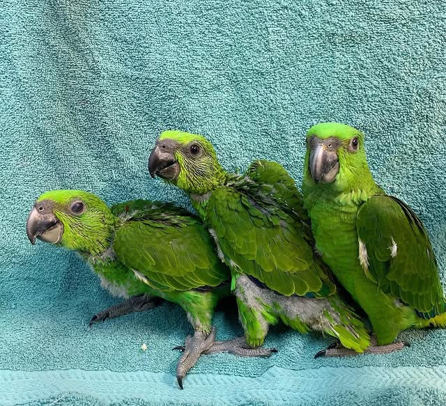 Meet this charming pair of baby Amazon parrots, full of life, curiosity, and affection. These young parrots are perfect for anyone looking to raise and bond with birds from an early age. Hand-raised with care, they are already comfortable around people and developing sweet, playful personalities.