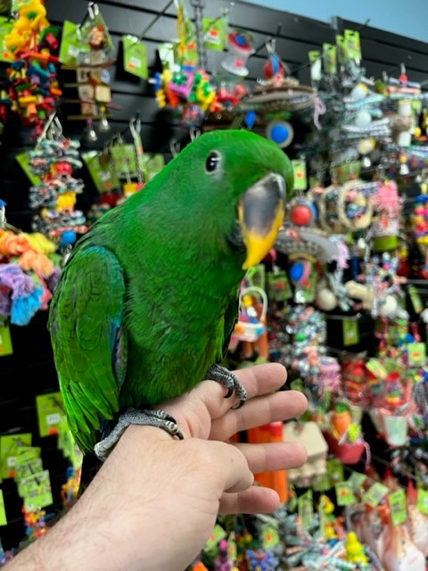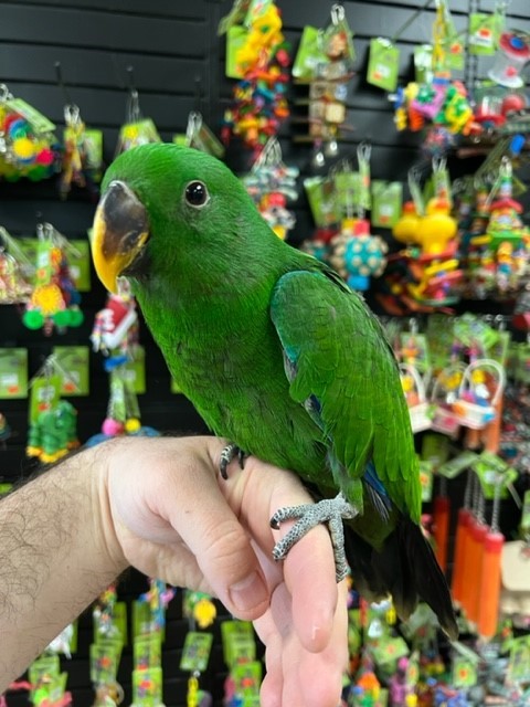 Meet Wilbur, a stunning Solomon Island Eclectus Parrot, admired for his striking colors, calm temperament, and intelligent personality. Known as one of the most affectionate Eclectus subspecies, Wilbur is a wonderful exotic companion ready for a loving home.