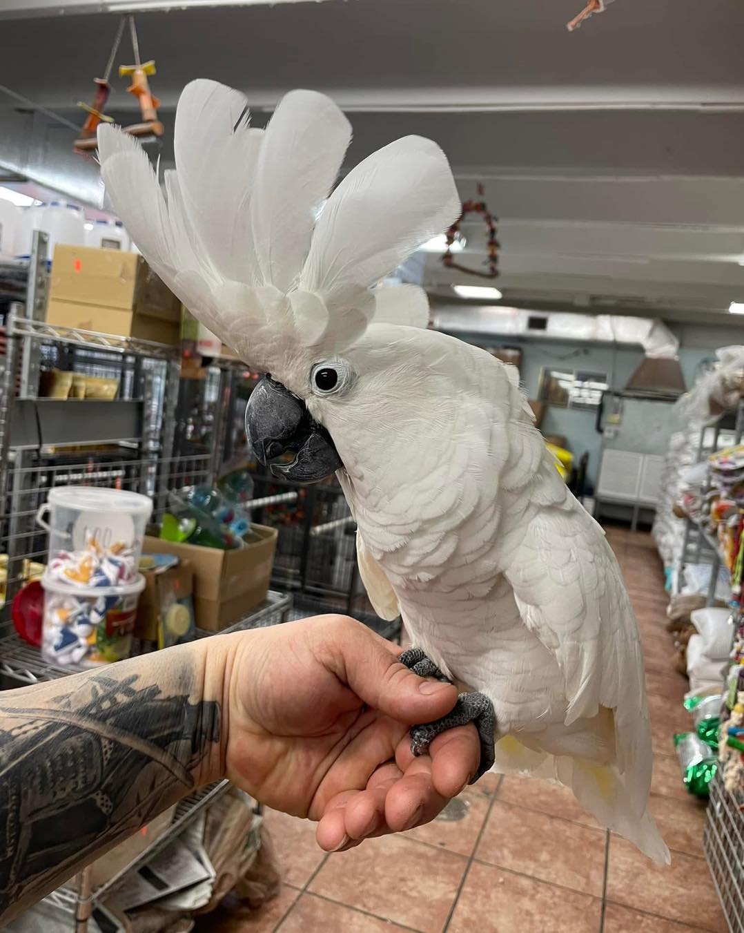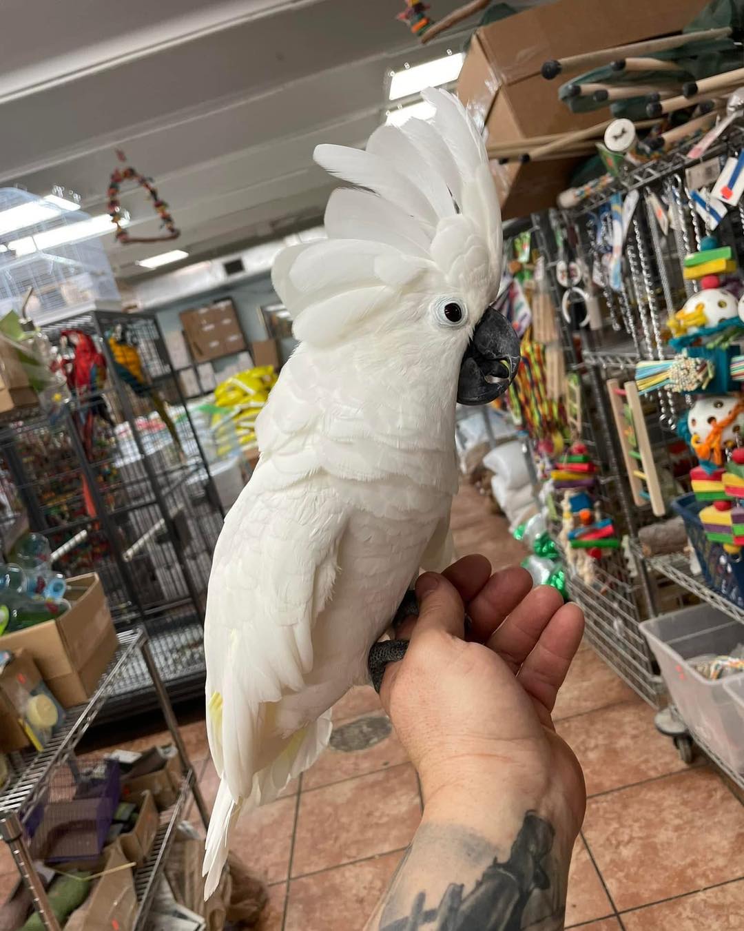 Meet Quincy, a stunning Umbrella Cockatoo, admired for his beautiful white feathers, expressive crest, and incredibly loving personality. Known for their affectionate nature, Umbrella Cockatoos are among the most social and people-oriented parrots—and Quincy is a perfect example.